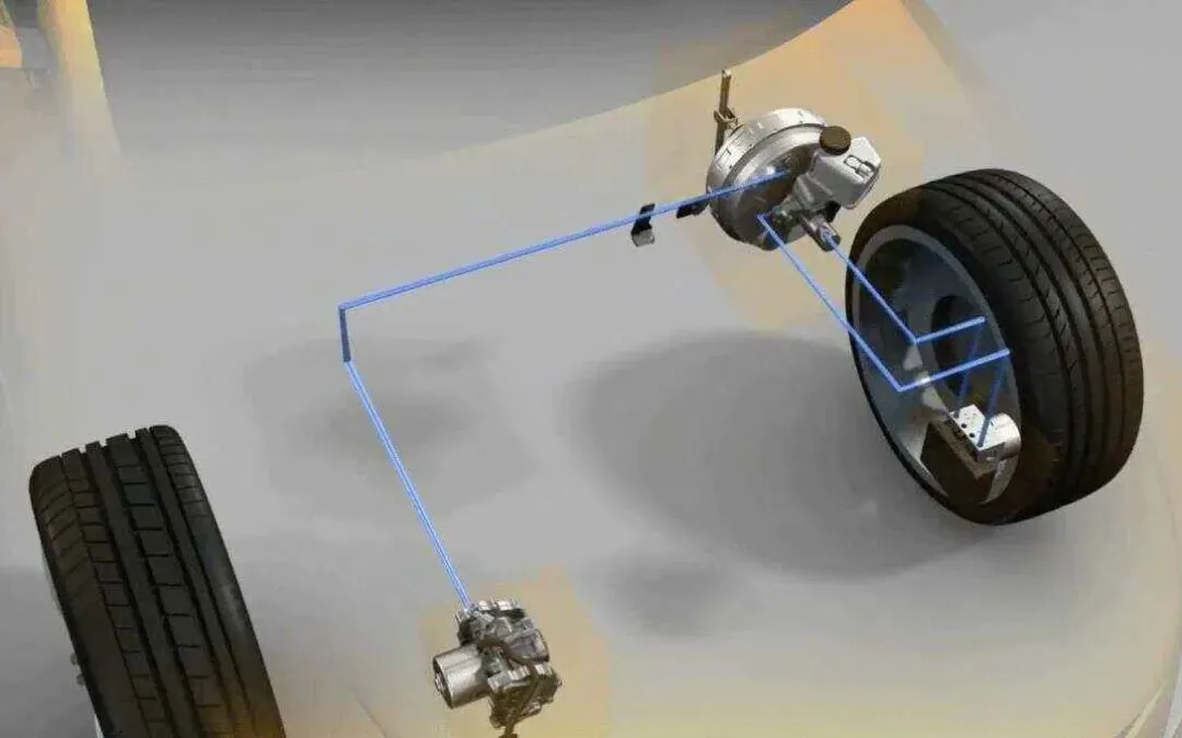 大家可以想象到,现在的线控技术路径是这样的:踏板传感器识别意图→电信号传递→电机驱动液压泵建立压力→液压推动卡钳。