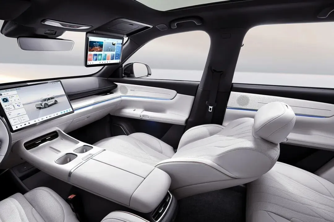 入门款加1万块,就能把前排座椅的加热、通风、按摩拉满,副驾还带电动腿托。最贴心的是,这笔钱还能给后排升级电动调节、座椅加热通风,甚至加个小桌板。带家人长途出行,后排乘客能舒服地躺着,还能放个平板办公,实用性直接拉满。