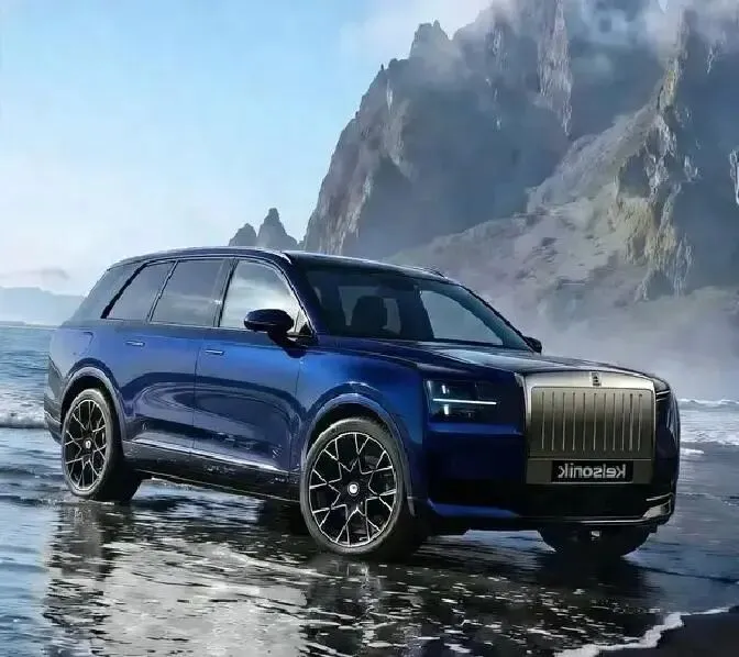上周我熬夜改稿,咖啡都泼了键盘,就为扒出这车的细节。结果一瞅渲染图,直接躺平:方正得像座小堡垒,前脸竖条格栅大得能当屏风,深蓝车身配黑窗,开出去保准回头率爆表。设计师说:“这车要是真能落地,豪华品牌得改行卖菜了。”