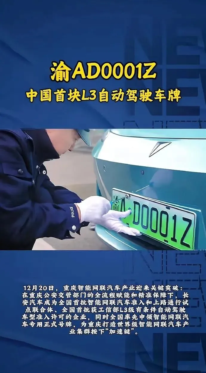 国家发牌不是闹着玩的。2025年12月20日,重庆直接发了全国第一块L3正式号牌,末尾带个“Z”,不是普通绿牌,是国家盖的“自动驾驶身份证”。
