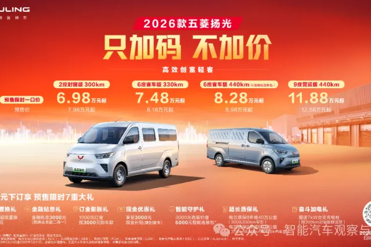 2026款五菱扬光开启预售!最大续航440km!最低6.98万?仅仅两年,五菱扬光为何能从“零”做到蝉联新能源轻客市场销冠?