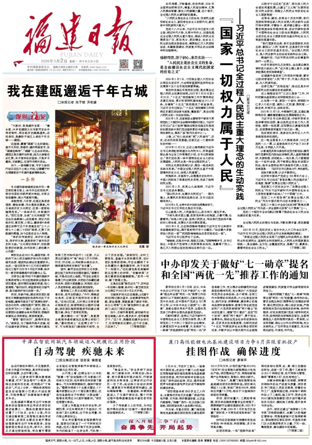 “展望‘十五五’,我们将聚焦技术创新赋能、场景深度拓展、制度体系健全等方面,稳步推进自动驾驶技术在道路运输、城市交通、物流配送等场景的规模化落地,深度融入实验区全空间无人体系,为平潭国际旅游岛建设注入新动能。”实验区交建局副局长邓浩说。