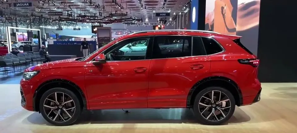 红色大众途观L侧面展示