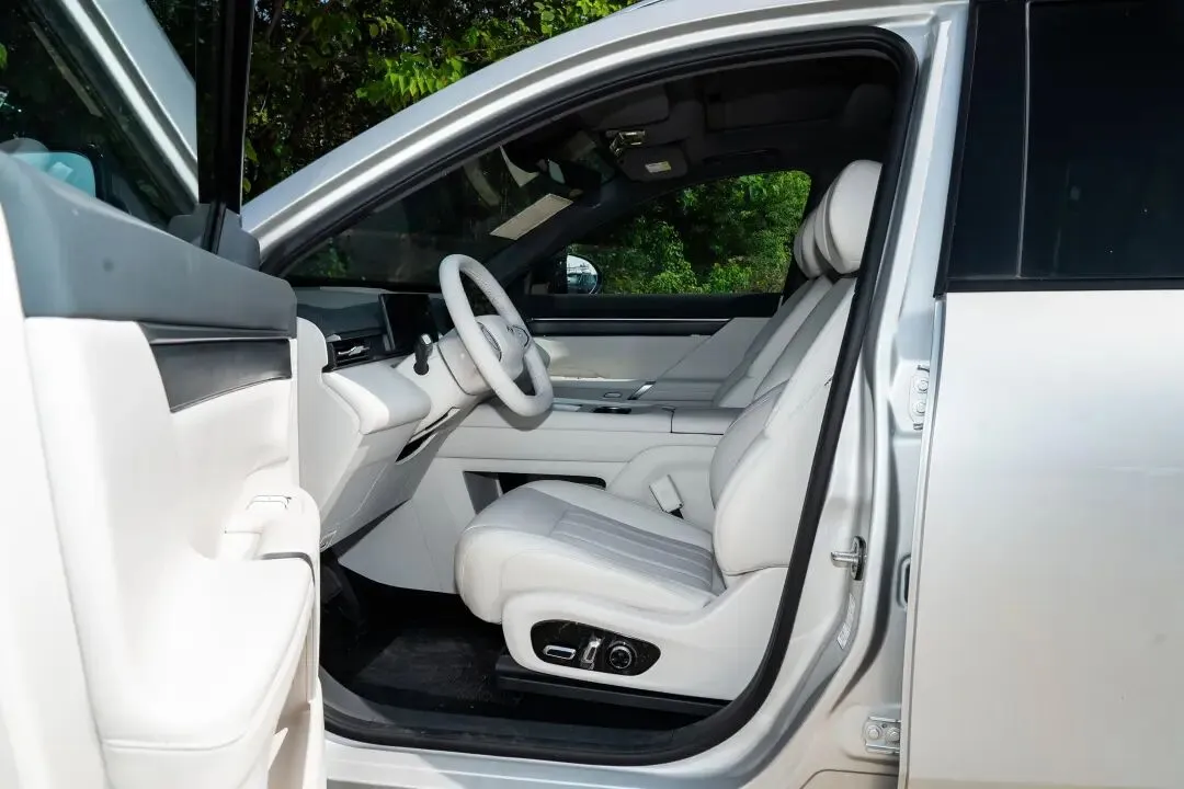 舒适性配置也是eπ008的强项。主副驾座椅都带通风、加热和三层气袋按摩功能,按摩顶出高度65mm,坐久了开个按摩模式腰背都能放松。加热功能从-18℃升到36℃只要5分钟,通风7分钟就能降温,不会有"屁股闷得慌"的感觉。