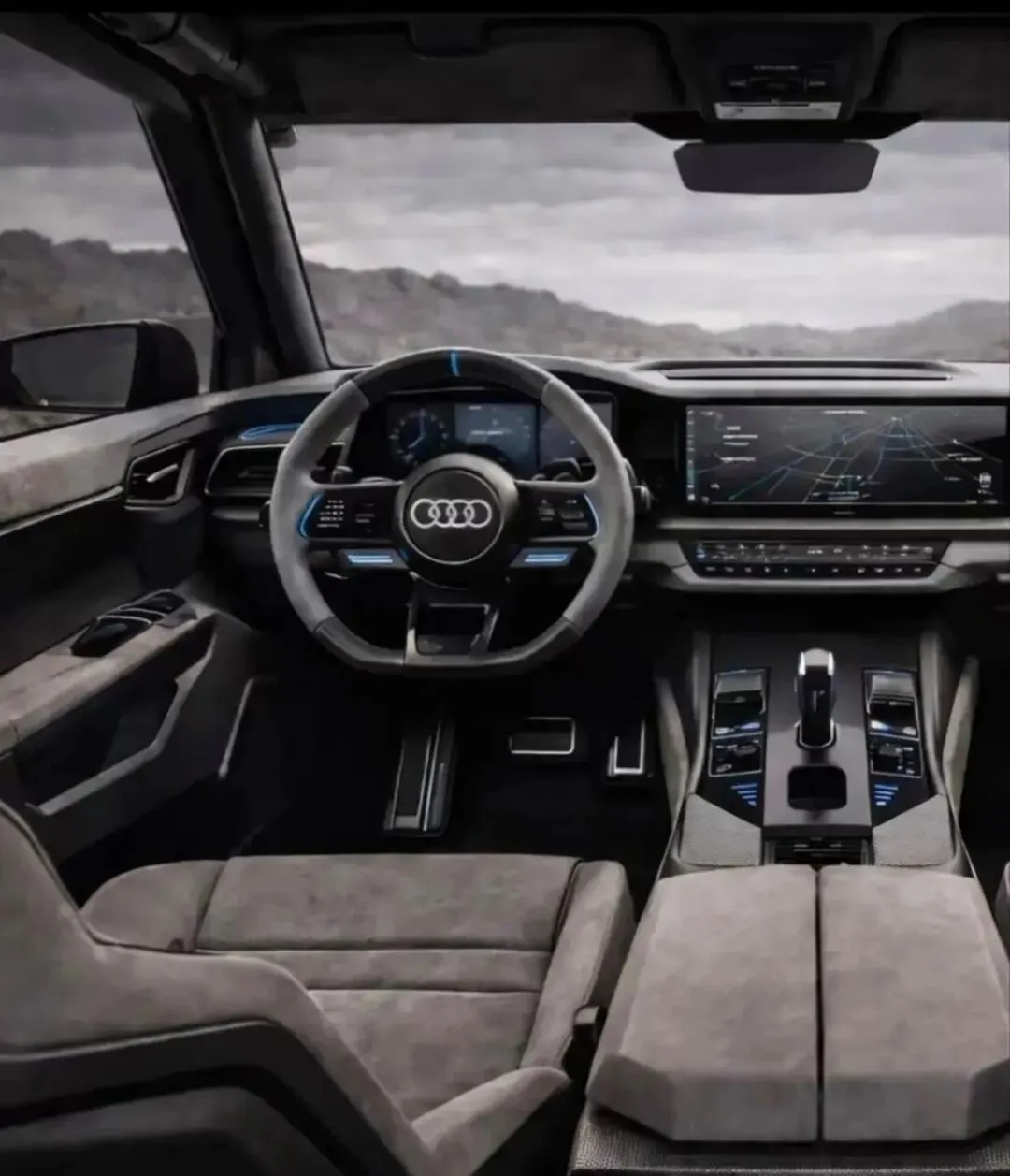 从渲染图来看,奥迪新款SUV家族特征明显,同时又有诸多创新设计。以备受关注的奥迪Q9为例,其前脸采用了分体式头灯组设计。上方细长的LED日行灯如同一道锐利的光线,勾勒出车辆的“眼神”,下方矩阵式主灯则蕴含着强大的照明功能,还具备智能光型调节,科技感与实用性兼具。搭配尺寸硕大的大嘴式前格栅,内部精致的镀铬装饰条或呈蜂窝状,或为参数化菱形镂空设计,在阳光下闪耀着璀璨光芒,尽显霸气与精致。