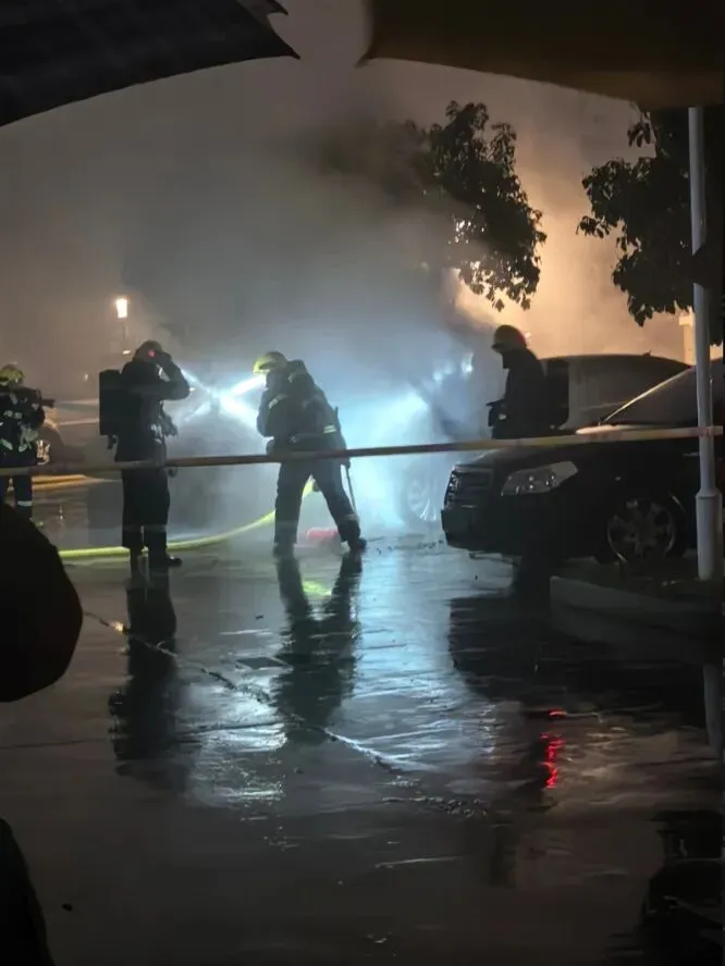 绍兴一小区内小轿车突然起火!消防车、救护车都来了!
