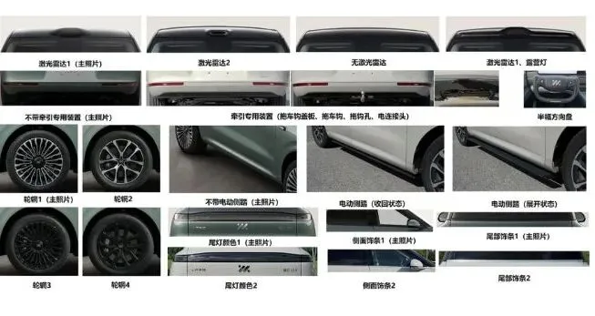 侧面轮廓其实没什么新鲜的,双腰线加内凹车门的组合,看着挺修长的,C柱位置没有做黑化处理,车顶倒是配了激光雷达,这也算是明确告诉你这车带智驾功能。轮毂样式估计会有几种选择,但从申报图看前两款造型更符合现在的审美趋势。至于尺寸方面,这台车的长宽高是5085/2000/1807毫米,轴距给到3060毫米,跟LS9比起来车长缩短了199毫米,轴距少了100毫米,但中大型SUV该有的气场还在,空间表现应该也不会让人失望。