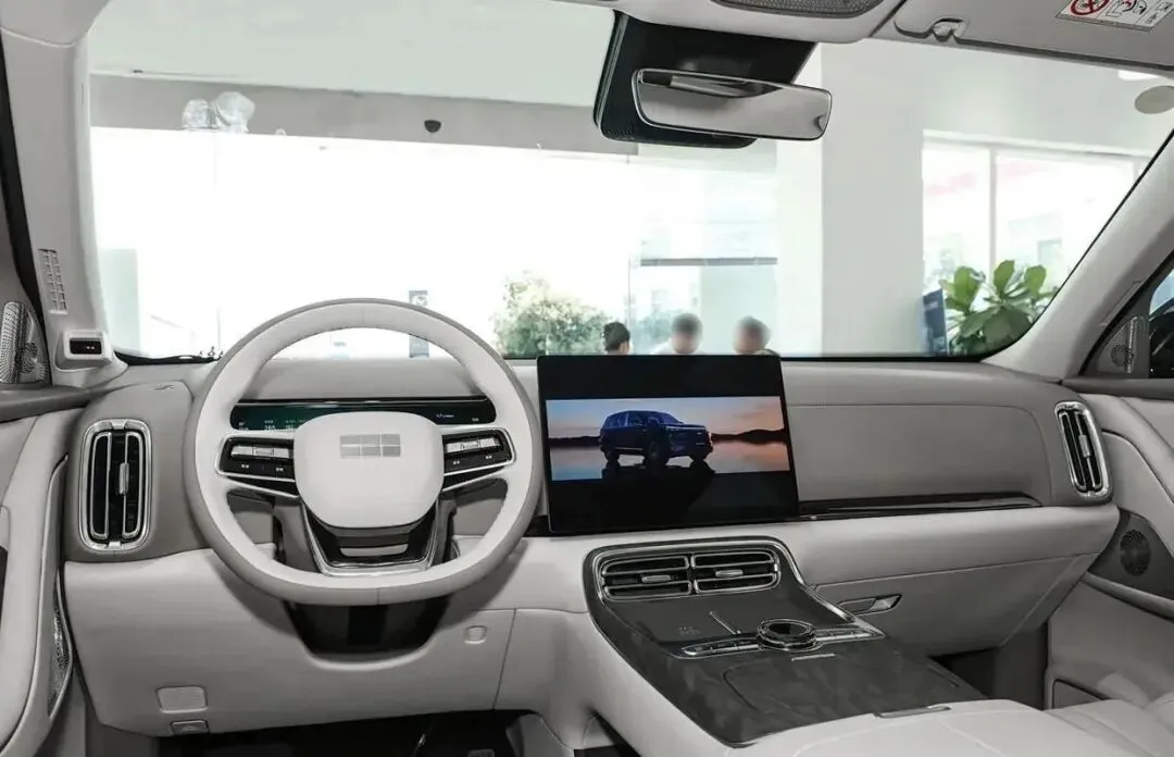 进入车内,内饰采用简约豪华设计风格,以“豪华满配的家”为核心定位,中控台采用对称式布局,配备12.66英寸内嵌式液晶仪表盘与30英寸中控屏/副驾屏连体屏,操作流畅,科技感拉满。空间表现是银河M9的核心优势,采用2+2+2六座布局,车内面积达5.2㎡,有效长度3.7m,支持8种座椅模式一键设定。第二排为双独立座椅,配备加热、通风、按摩功能,舒适性拉满,180mm车内通道方便乘客进出第三排;第三排空间宽敞,靠背支持150度电动调节,成年人长途乘坐不压抑。