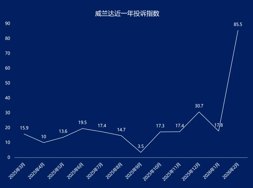 汽车质量投诉点评:2月,威兰达的投诉指数环比涨超3倍,一举冲上SUV投诉榜单第二名。这背后,2026款车型卡片钥匙不灵敏成为车主的投诉原因。车主普遍反映,卡片钥匙存在感应灵敏度低的问题,雨天和地下车库等场景中基本失灵。此外,卡片钥匙超薄的设计导致抗弯折性能差,使用过程中容易损坏。更值得一提的是,车内启动需将卡片钥匙放在无线充电区域,但不及时取走还容易烧毁。目前,车主们的诉求是要求官方提供传统遥控钥匙且修复卡片钥匙的缺陷。
