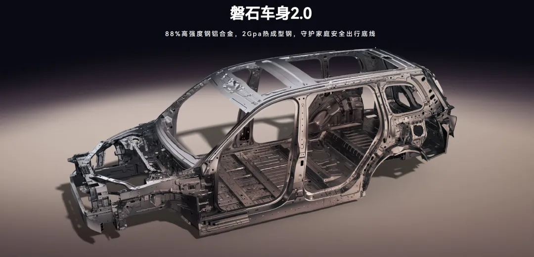 而安全的内核,远不止于智能系统。风云T11的磐石车身2.0基于全球最高标准的五星安全车身结构打造,高强度钢占比88%,在关键部位使用了热成型钢和超高强度钢,构成了一个坚固的笼式车身。