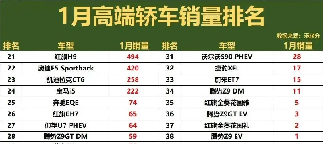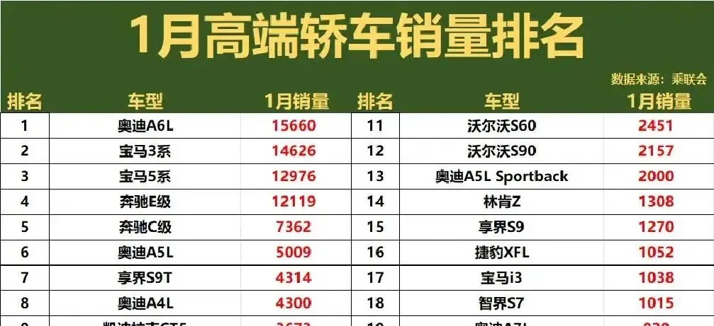 1月高端轿车销量榜一炸,我直接拍桌笑出声——德系还在霸榜前六,华为系居然杀进前十,凯迪拉克被按在地上摩擦!这波操作,让传统豪华品牌连夜删掉朋友圈。