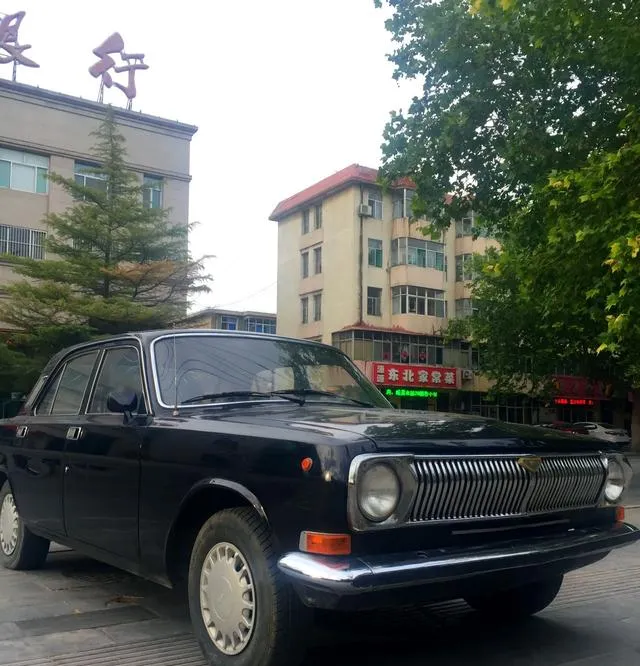 图上这辆就是苏联进口的老伏尔加GAZ-24,这一身铮亮的黑铁皮子,线条正直,抬头看上去抖抖爽爽,一字排开的粗横条格栅,比现在市里的公车气场都足,车头的鹿标志以前看着扎眼,现在成了老车迷心头肉。小时候有一次陪着父亲路过县委大院,院门口停着两辆伏尔加,家里长辈低声说“看,人家大队长上下班都开它,这排场不是闹着玩儿的”,当年可不是随便谁都能沾边。