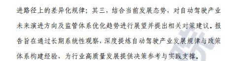 - 构建统一标准体系:明确传感器性能、算法安全等技术标准,降低跨区域运营成本。