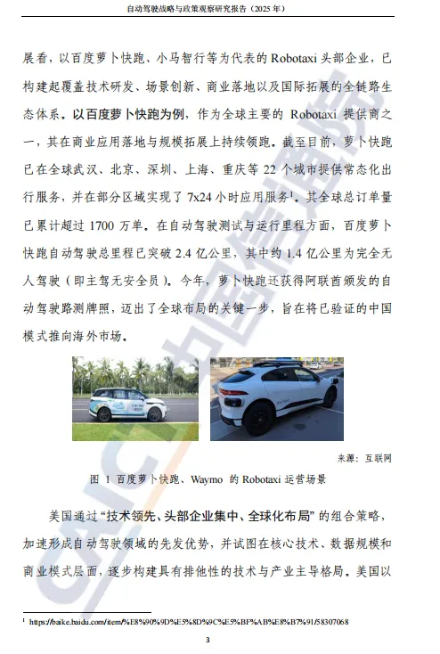 - 中国路径:百度萝卜快跑覆盖 22 座城市,累计订单超 1700 万单,完全无人驾驶里程达 1.4 亿公里,部分城市实现 7x24 小时常态化运营。