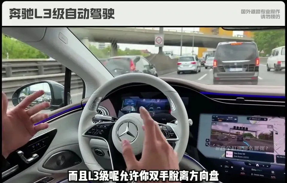 从2025年开始,奔驰L3级就可以在德国上路行驶了。而且L3级允许你双手脱离方向盘,在车内打游戏、看电影都可以。