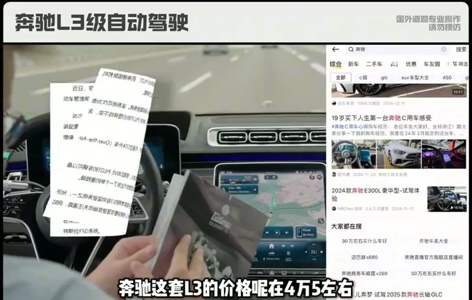 奔驰L3级自动驾驶,价格在4万5左右