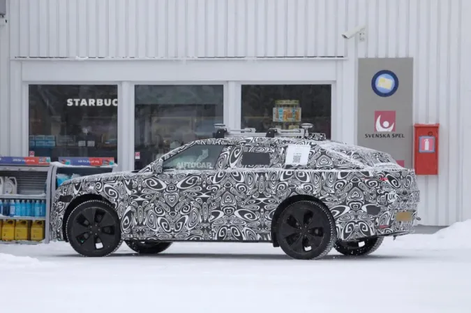 从外观上看,新车展现出极致的溜背线条,自B柱后快速下压,尾部扰流板延伸超出后风挡,营造出类似四门Coupe的动感轮廓,车窗区域持续被全遮蔽,强烈暗示将采用流媒体后视摄像头系统,取代传统后三角窗与侧窗,以优化空气动力学并释放后排头部空间。