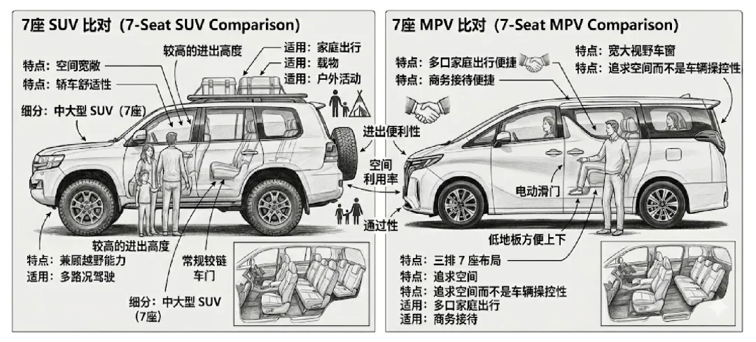 MPV强调“后排优先”;新一代七座SUV强调“全车均衡”。当效率差距被压缩,选择就不再只取决于功能,而取决于偏好。