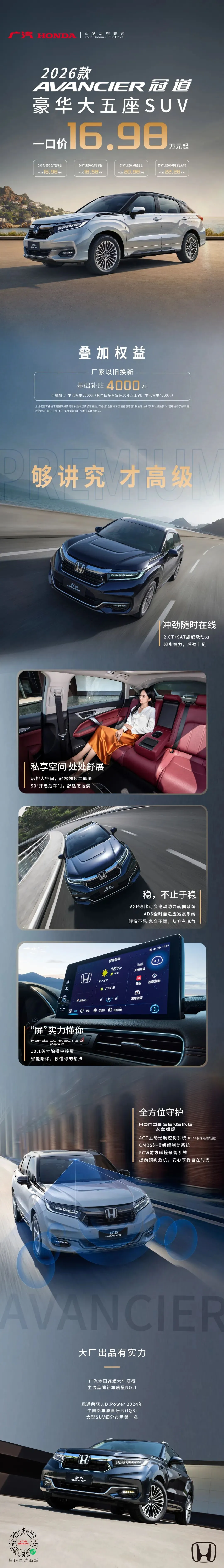 2026款冠道 豪华大五座SUV 一口价:16.98万元起