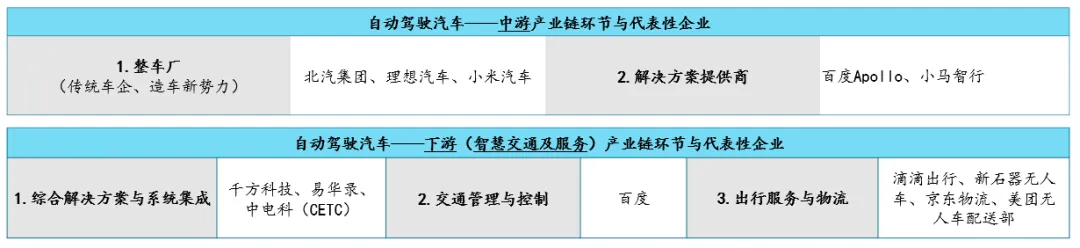 表2、表3:自动驾驶汽车产业链——中下游企业(示例:北京地区)