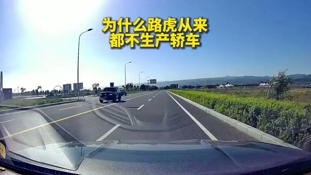 路虎汽车行驶在道路上,讨论路虎不生产轿车的原因。