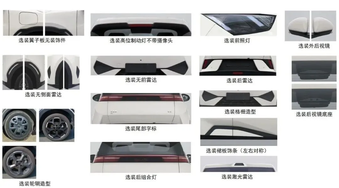 尺寸上,新款宏光MINIEV双门略缩小(3043/1520/1590mm,轴距1965mm)、四门加大(3268/1520/1575mm,轴距2190mm),差异更明显,大概率是为了拉开价格差。