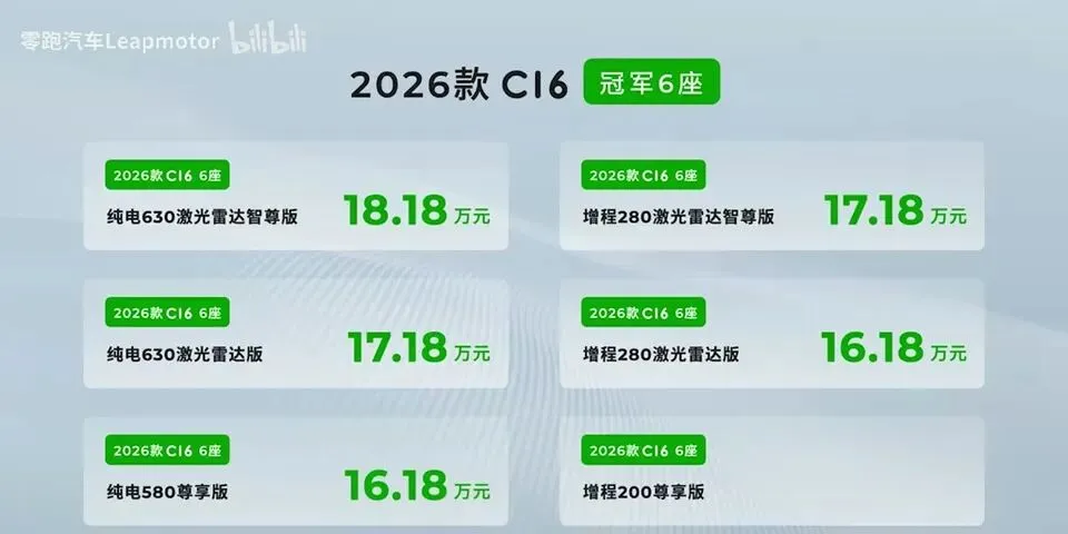 零跑C16是真的狠,增程版15.18万起,6座纯电16万出头,还带激光雷达。