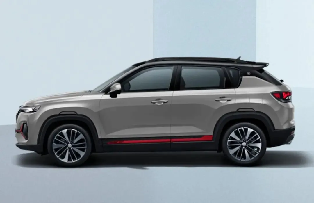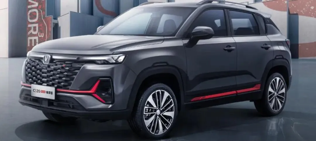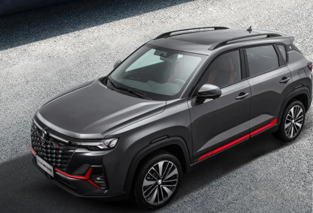 说实话,长安这几年设计确实开窍了。以前那种"借鉴"痕迹重的造型不见了,现在的设计师估计是吃了什么灵丹妙药,做出来的车一个比一个有想法。CS35PLUS就是个典型例子,侧面那一抹红装饰,熏黑格栅配熏黑尾灯,乍一看还真有点小钢炮的意思。