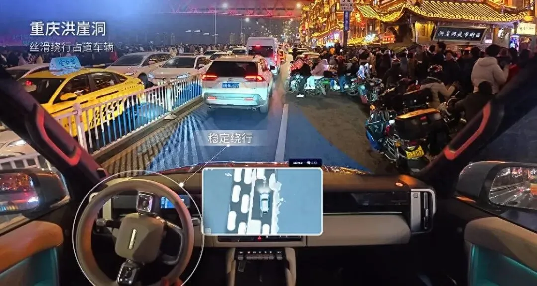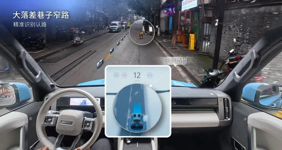“漫游模式”听着玄乎,其实就是没导航、没车道线、没地图也敢动。我在实测视频里看它自己绕过一个断头村道,右拐进土路,看见前面有牛车又缓行降速,拐弯时车身调得特别顺。这种地方连地图都没标,但系统把它当探索任务做——断头路→右转→窄巷→缓行,一气呵成。
