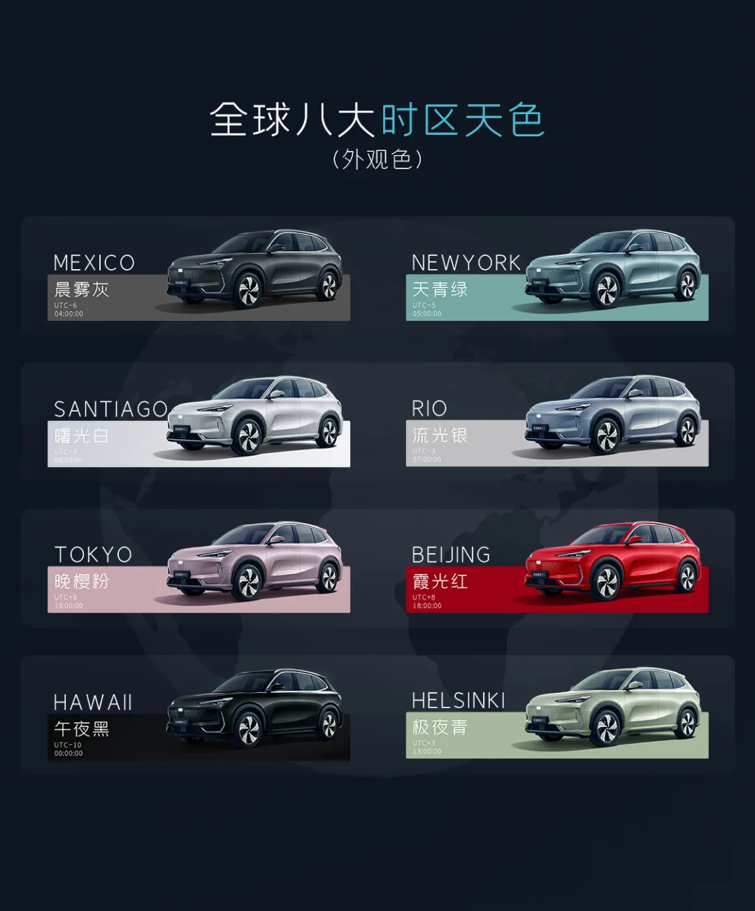 吉利银河E5以全球共性审美和需求为思考原点,以全球各时区的都市生活为灵感,带来霞光红、流光银、曙光白,以及消费者呼声很高的午夜黑、极夜青等8种极富想象空间的唯美车身色。同时,银河E5从中国瓷器汲取设计灵感,将全球审美和东方文化完美融合,前脸保留品牌超级符号“光之涟漪”,并采用虎式前脸、旭日东升贯穿式尾灯、飞檐虎式前大灯等广受好评的设计元素,以全新设计的灵动型面,描绘出“气韵生动”的视觉体验。
