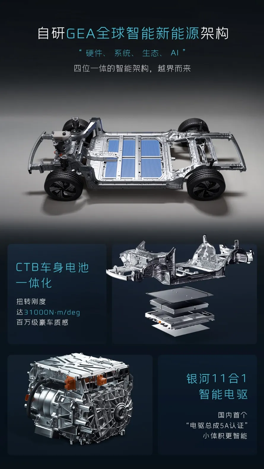 吉利银河E5搭载的银河11合1智能电驱同级重量最轻、体积最小、动力最强、效率最高,实现IGBT电驱效率行业首次突破90%,达到90.04%。同时,吉利全栈自研的“魔方”热管理系统,实现20合1的超高集成。两项核心技术的突破,让银河E5的百公里电耗达到同级最低的11.9kWh。银河E5搭载吉利自研的银河Flyme Auto车机系统。银河Flyme Auto车机系统基于魅族Flyme操作系统多年的积累,在吉利自研7nm车规级芯片“龍鹰一号”的支持下,反应快、不卡顿,灵活跳转,易上手、生态广,还聪明。独有的“小窗模式”和“SmartBar”灵动岛,能解决大量“临时性”交互需求,并可放大缩小,,让银河E5真正做到车机和手机一样好用。
