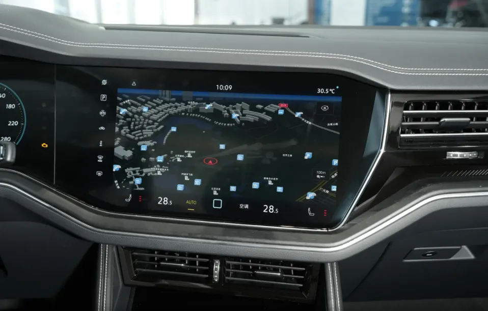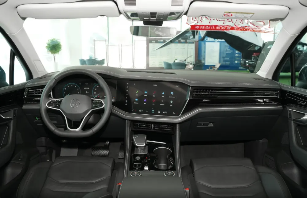 座舱设计上,这台2026款大众途锐同样延续了大众高端豪华车型的质感,12英寸全液晶仪表与15.05英寸中控屏采用一体式玻璃覆盖,配合AR实景导航抬头显示,构建出全数字化驾乘空间。车机搭载Asterix车载娱乐系统,支持无线CarPlay、Android Auto及高德地图,虽操作流畅度与国产新势力仍有差距,但本地化应用已显著升级。车内大量采用真皮材质与木纹饰条包裹,30色可调氛围灯烘托氛围,前排座椅配备18向电动调节、加热、通风及按摩功能,后排座椅支持靠背调节与加热,四区自动空调、空气净化系统及丹拿音响系统,全方位提升乘坐舒适性。倒也对得起该车这个昂贵的价格了,但是与同价位的新能源汽车相比,其在智能化体验上,还是有一定劣势的。