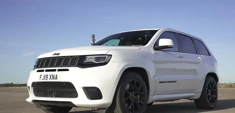 吉普大切诺基赛道鹰,白色车身,Trackhawk这个名字就代表着美式暴力美学。