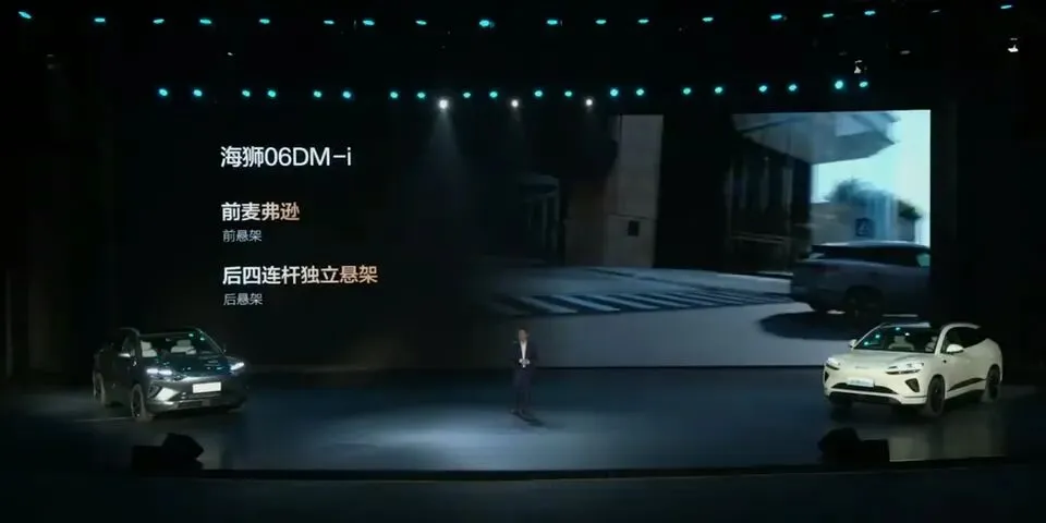 DMI版本前麦弗逊后四连杆,纯电是双球头麦弗逊+五连杆。