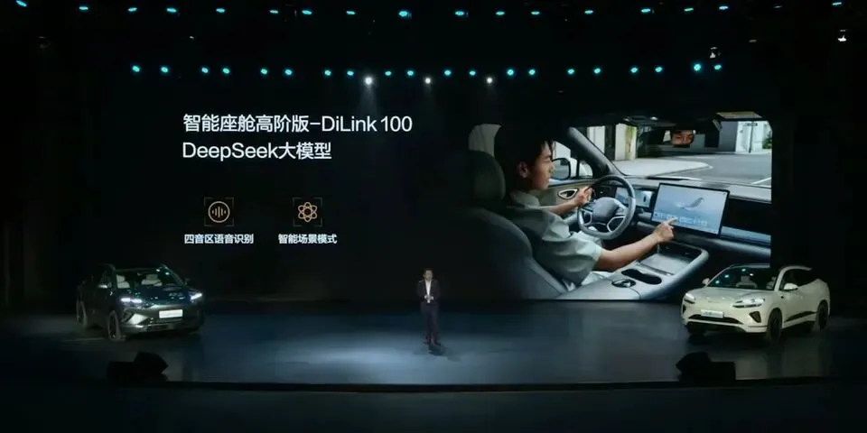 智能座舱是DiLink100,四音区语音,DeepSeek大模型,手车互联全系有。