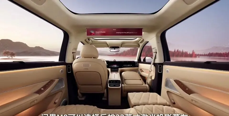 问界M8的内饰豪华大气,后排还配了娱乐大屏,这点必须给华为大大的好评,长途出行孩子不会闹。