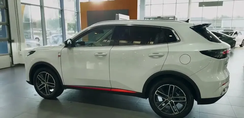 车身侧面,流畅的腰线从车头延伸至车尾,塑造出动感十足的视觉效果,搭配大尺寸双色铝合金轮毂和常规式门把手,不仅进一步提升了整车的实用感,还优化了空气动力学性能。