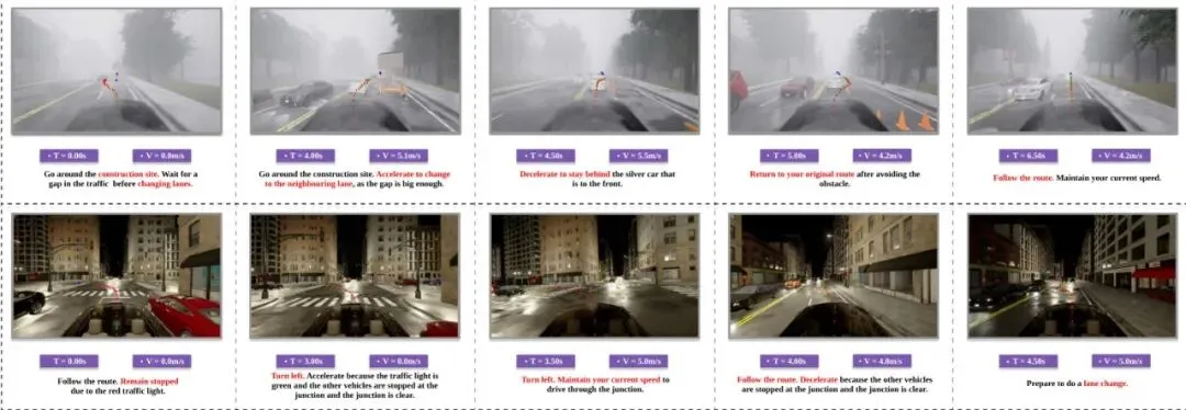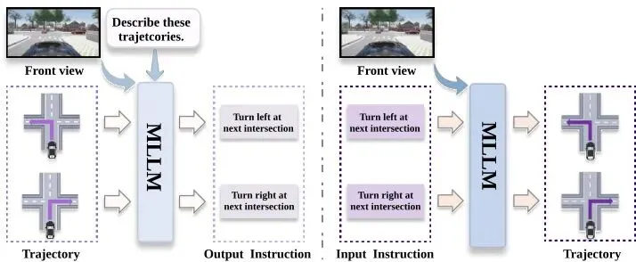 · 动作理解(图生文):给模型看当前场景和一条已经执行了的轨迹,让它“猜”司机刚才收到了什么指令。