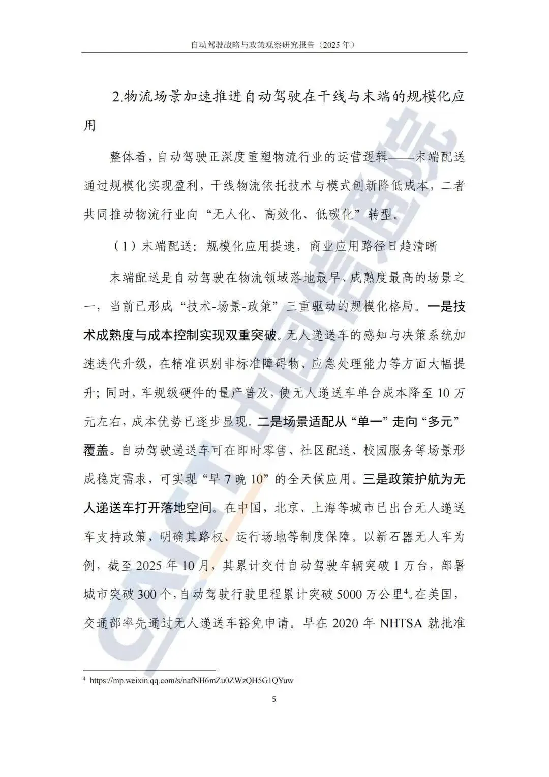 出行服务、智慧物流、封闭场地作业三大核心场景实现规模化突破,成为产业发展的核心抓手。其中,百度萝卜快跑等头部企业的 Robotaxi 已在 22 城常态化运营,累计订单超 1700 万单,新石器无人递送车交付量也突破 1 万台。