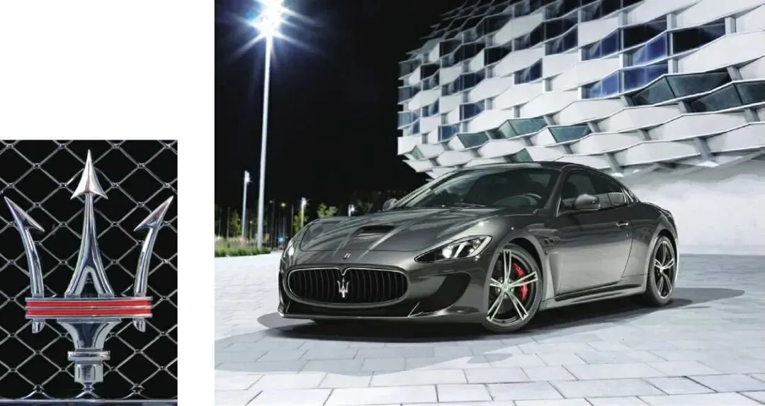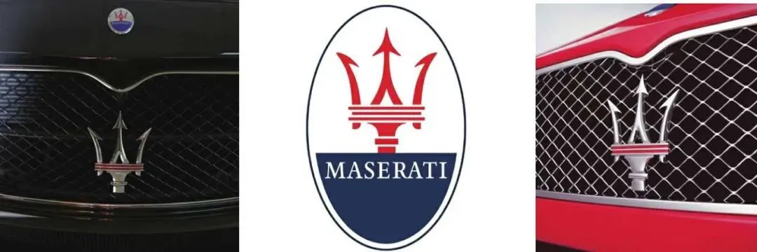 玛莎拉蒂标志使用了红、白、蓝三色。三叉戟为红色,体现了海王的神圣;蓝色代表着海洋,象征着力量、卓越和品位;白色代表着品牌的纯洁和魅力。同时,红蓝配色,源于博洛尼亚市旗帜的颜色。这样的组合显得现代和时尚。