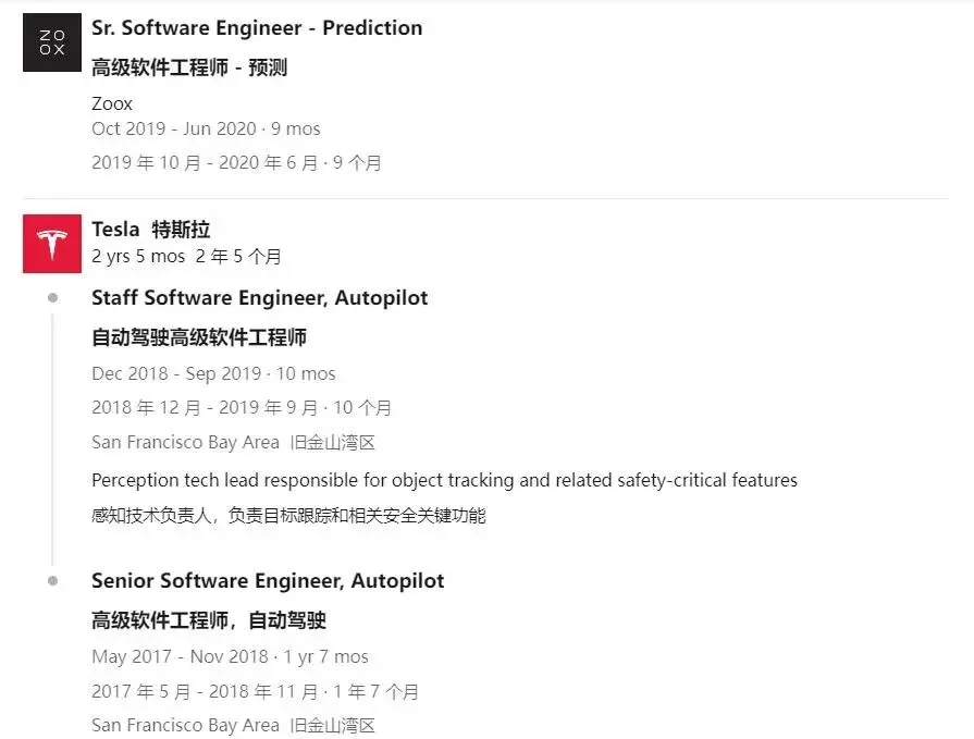 2017年,段鹏飞首次加入特斯拉,担任自动驾驶项目高级软件工程师。
