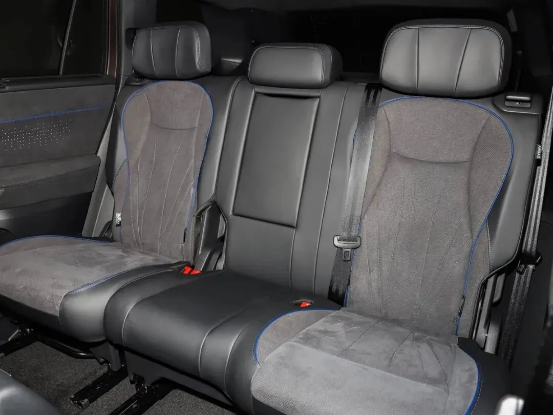 后排座椅放倒能到2400多升,搬家拉个冰箱都没问题。前排加热通风按摩、二排加热、方向盘加热、30色氛围灯全是标配,第二第三排带电动翻折,家里有老人孩子的,应该知道这玩意儿多实用。