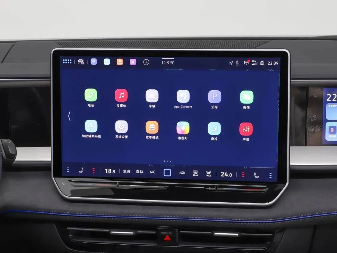 车里塞了块15寸2K屏,副驾还有个11.6寸娱乐屏,用的8155芯片,12G内存,支持苹果华为百度手机互联。语音响应0.8秒以内,能听懂方言。这套座舱放在合资燃油车里,确实算稀罕物。