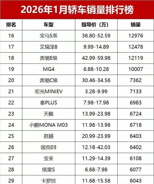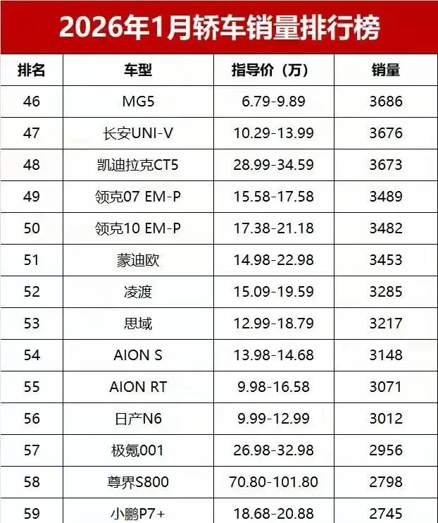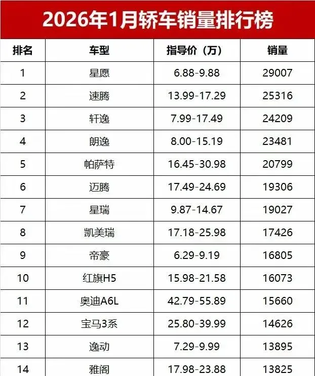 刚过完春节那会儿,我在朋友圈刷到一条挺有意思的动态,一个做汽车媒体的朋友发了张截图,配文就俩字:活久见。点开一看,好家伙,2026年1月的轿车销量榜,看得我眼珠子差点掉出来。这榜单一出,感觉整个车圈都安静了一下,紧接着就是各种讨论炸开了锅。