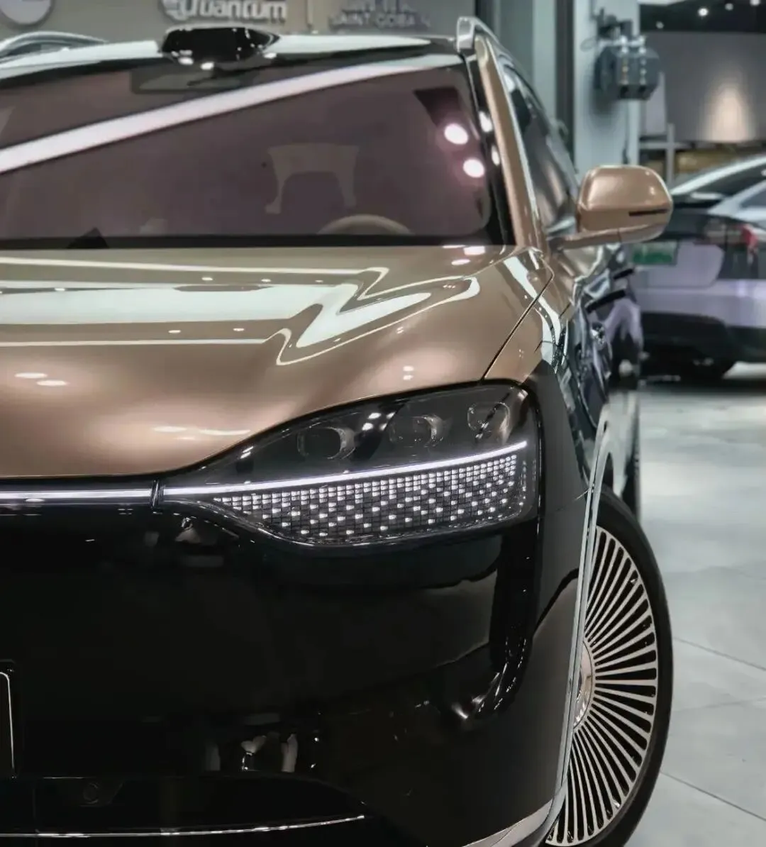先看**颜值**:5230×1999×1800mm的车身,轴距3110mm,气场直接拉满。前脸封闭式格栅+贯穿灯,晚上一亮,别人问:“这车啥牌子?”你回:“问界,懂的都懂。”隐藏式门把手+21寸轮毂,风阻低得离谱,开起来静得像在卧室。