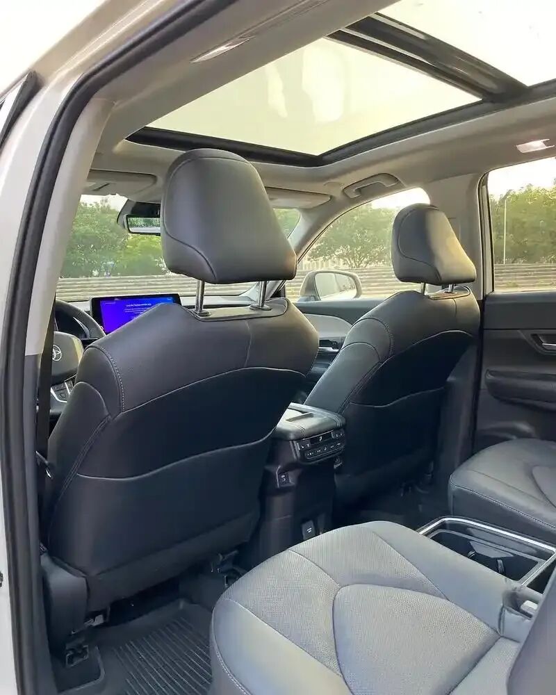 内饰方面,2026 款丰田大汉兰达座舱主打实用家用的设计风格,内饰大面积采用软性材质包裹,质感细腻,全系标配 12.3 英寸全液晶仪表 + 12.3 英寸中控屏,搭载 8155 芯片与华为鸿蒙座舱,车机操作流畅度拉满,彻底告别老款车机卡顿的问题,同时标配 L2 级丰田智行安全系统,座椅舒适性拉满,长时间乘坐也不会觉得疲惫,全车隔音表现也比老款有明显提升。唯一不足的是低配车型缺少座椅加热功能,北方用户使用略有不便。