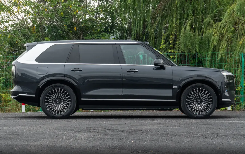 外观设计上,极氪 9X 将硬派气势与精致质感完美融合。前脸采用大尺寸直瀑式格栅设计,纵向排列的格栅条极具视觉冲击力,搭配造型犀利的大灯组,点亮后辨识度拉满,尽显豪华大型 SUV 的气场。前铲处的银色线条装饰,为整车增添了一丝运动气息,让前脸造型更加饱满立体。侧身线条流畅舒展,平直的车顶设计不仅赋予了车辆强烈的行政质感,更重要的是保障了车内驾乘者的头部空间,即使是第三排乘客也不会感到压抑。多辐式轮毂的搭配,进一步提升了整车的豪华感与稳重感。