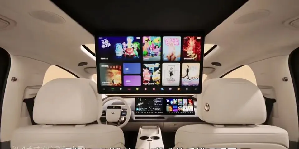 理想i8直接上21.4英寸吸顶屏,冰箱、按摩、零重力,一套下来很狠。