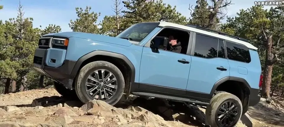 兰德酷路泽LC250车头撞上岩石,无法以相同角度攀爬。