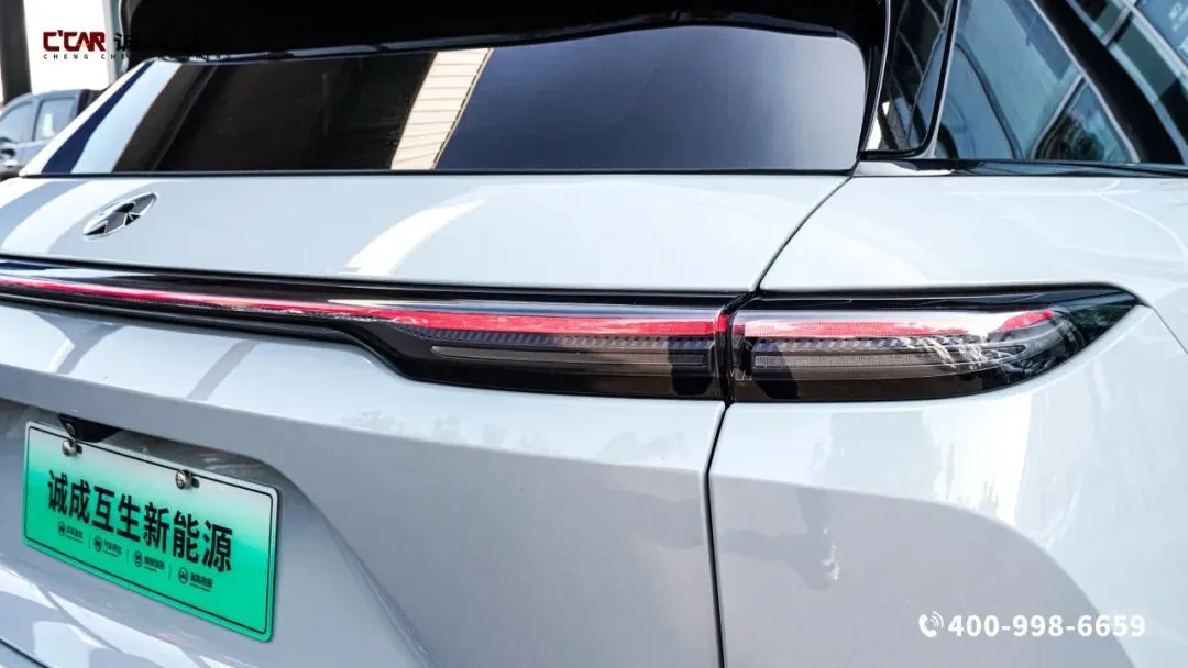 星灰车漆如同被晨雾浸润的深空,在不同光线中呈现细腻的明暗层次,既没有黑色的沉闷,也避开了亮色的张扬,低调中暗藏锋芒,完美契合都市出行的优雅格调。车头型面挺拔利落,棱线分明如雕塑般立体。标志性的蔚来Logo静静矗立,与昂扬的前脸呼应,尽显自信姿态。双腰线设计勾勒出灵动的车身轮廓,上腰线如流动的光影,下腰线沉稳有力。20英寸五辐竞风轮圈如同展开的羽翼,辐条凌厉的线条增强视觉张力。尾部简约中透着巧思,光锋尾灯点亮时如同科幻战舰的能量导轨充能完毕,晶莹剔透又极具辨识度,成为你消失在夜色中最独特的背影签名。
